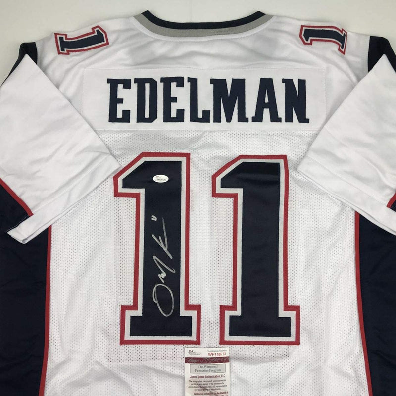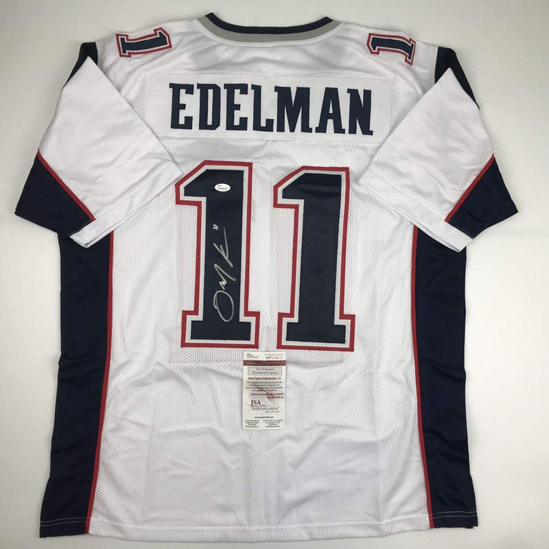 Autographed/Signed Julian Edelman New England White Football Jersey JSA COA