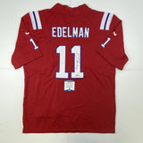 Autographed/Signed Julian Edelman SB LIII MVP New England Red Football Jersey Beckett BAS COA
