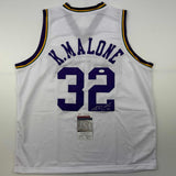 Autographed/Signed Karl Malone Utah White Retro Basketball Jersey JSA COA