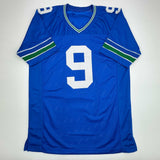 Autographed/Signed Kenneth Walker Seattle Retro Blue Football Jersey Beckett BAS COA