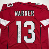 Autographed/Signed Kurt Warner Arizona Red Football Jersey JSA COA