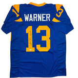 Autographed/Signed Kurt Warner St. Louis Blue Football Jersey JSA COA
