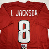 Autographed/Signed Lamar Jackson Louisville Red College Football Jersey JSA COA