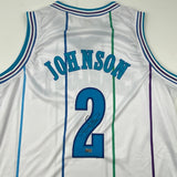 Autographed/Signed Larry Johnson Charlotte White Basketball Jersey Steiner COA