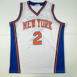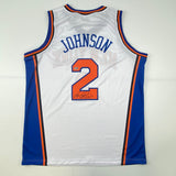 Autographed/Signed Larry Johnson New York White Basketball Jersey Steiner COA