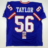 Autographed/Signed Lawrence Taylor HOF 99 New York Blue Football Jersey JSA COA