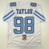 Autographed/Signed Lawrence Taylor North Carolina UNC White College Football Jersey JSA COA
