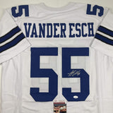 Autographed/Signed Leighton Vander Esch Dallas White Football Jersey JSA COA