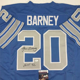 Autographed/Signed Lem Barney HOF 92 Detroit Blue Football Jersey JSA COA