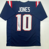 Autographed/Signed Mac Jones New England Blue Football Jersey Beckett BAS COA