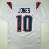 Autographed/Signed Mac Jones New England White Football Jersey Beckett BAS COA