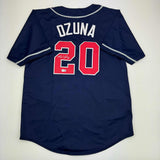 Autographed/Signed Marcell Ozuna Atlanta Blue Baseball Jersey Beckett BAS COA