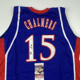 Autographed/Signed Mario Chalmers Kansas Blue College Basketball Jersey JSA COA