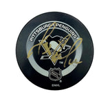 Autographed/Signed Mario Lemieux Pittsburgh Penguins Logo Hockey Puck JSA COA