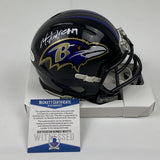 Autographed/Signed Mark Andrews Baltimore Ravens Mini Football Helmet Beckett BAS COA