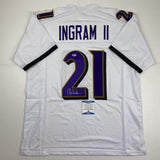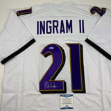 Autographed/Signed Mark Ingram II Baltimore White Football Jersey Beckett BAS COA