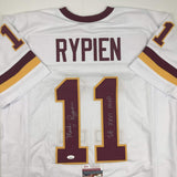 Autographed/Signed Mark Rypien SB XXVI MVP Washington White Football Jersey JSA COA
