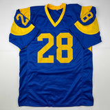 Autographed/Signed Marshall Faulk St. Louis Retro Blue Stat Football Jersey JSA COA
