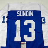 Autographed/Signed Mats Sundin HOF 12 Toronto Blue Hockey Jersey JSA COA