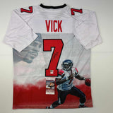 Autographed/Signed Michael Mike Vick Atlanta White Photo Artwork Football Jersey JSA COA