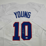 Autographed/Signed Michael Young Texas White Baseball Jersey JSA COA