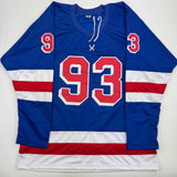 Autographed/Signed Mika Zibanejad New York Blue Hockey Jersey Beckett BAS COA