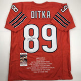 Autographed/Signed Mike Ditka Chicago Orange Stat Football Jersey JSA COA