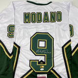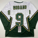 Autographed/Signed Mike Modano Dallas White Hockey Jersey Beckett BAS COA