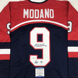 Autographed/Signed Mike Modano HOF 2014 United States USA Blue Hockey Jersey Beckett BAS COA