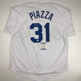 Autographed/Signed Mike Piazza Los Angeles LA White Baseball Jersey Beckett BAS COA