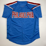 Autographed/Signed Mike Schmidt Philadelphia Retro Blue Baseball Jersey GTSM COA Hologram Only