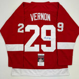 Autographed/Signed Mike Vernon Detroit Red Hockey Jersey JSA COA