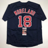 Autographed/Signed Mitch Moreland Boston Blue Baseball Jersey JSA COA