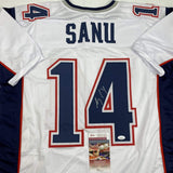 Autographed/Signed Mohamed Sanu New England White Football Jersey JSA COA