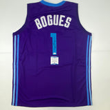 Autographed/Signed Muggsy Bogues Charlotte Purple Modern Basketball Jersey Beckett BAS COA