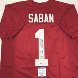 Autographed/Signed Nick Saban Roll Tide Alabama Red College Football Jersey Beckett BAS COA