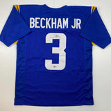 Autographed/Signed Odell Beckham Jr. OBJ Los Angeles LA Blue Football Jersey Beckett BAS COA