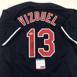 Autographed/Signed Omar Vizquel Cleveland Blue Baseball Jersey PSA/DNA COA