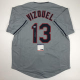 Autographed/Signed Omar Vizquel Cleveland Grey Baseball Jersey PSA/DNA COA