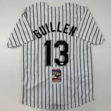 Autographed/Signed Ozzie Guillen Chicago Pinstripe Baseball Jersey JSA COA