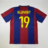 Autographed/Signed Patrick Kluivert FC Barcelona Blue Soccer Jersey Beckett BAS COA