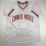 Autographed/Signed Pete Rose 4256 Cincinnati White Stat Baseball Jersey JSA COA