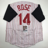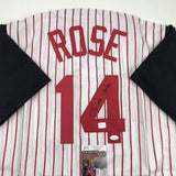 Autographed/Signed Pete Rose Cincinnati Pinstripe Baseball Jersey JSA COA