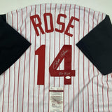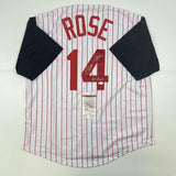 Autographed/Signed Pete Rose Hit King Cincinnati Pinstripe Baseball Jersey JSA COA