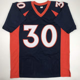 Autographed/Signed Phillip Lindsay Denver Blue Football Jersey JSA COA