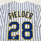 Autographed/Signed Prince Fielder Milwaukee White Pinstripe Baseball Jersey JSA COA