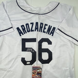 Autographed/Signed Randy Arozarena Tampa Bay White Baseball Jersey JSA COA