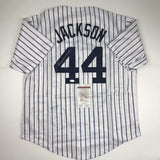 Autographed/Signed Reggie Jackson New York NY Pinstripe Baseball Jersey JSA COA