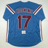Autographed/Signed Rhys Hoskins Philadelphia Retro Blue Baseball Jersey Beckett BAS COA