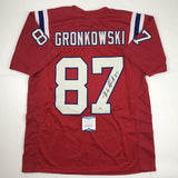 Autographed/Signed Rob Gronkowski New England Red Football Jersey Beckett BAS COA
